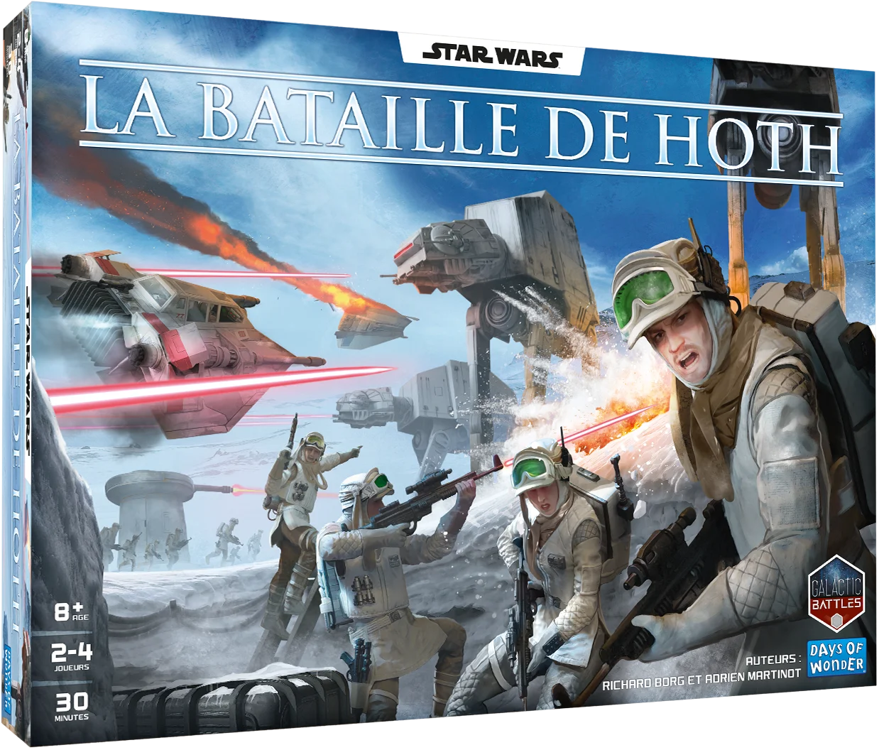 Mènerez-vous l’attaque impitoyable des troupes impériales ou rejoindrez-vous les courageux rebelles qui luttent pour leur survie ? La « Bataille de Hoth » est un jeu de figurines simple, mais détaillé, qui se déroule sur la planète glacée Hoth et reproduit la célèbre bataille de « Star Wars™ - The Empire Strikes Back ». Le jeu comprend plus de 70 figurines et 15 scénarios. En utilisant des cartes Ordre, les joueurs activent une unité après l’autre sur le champ de bataille afin de remporter la victoire sur leur adversaire.