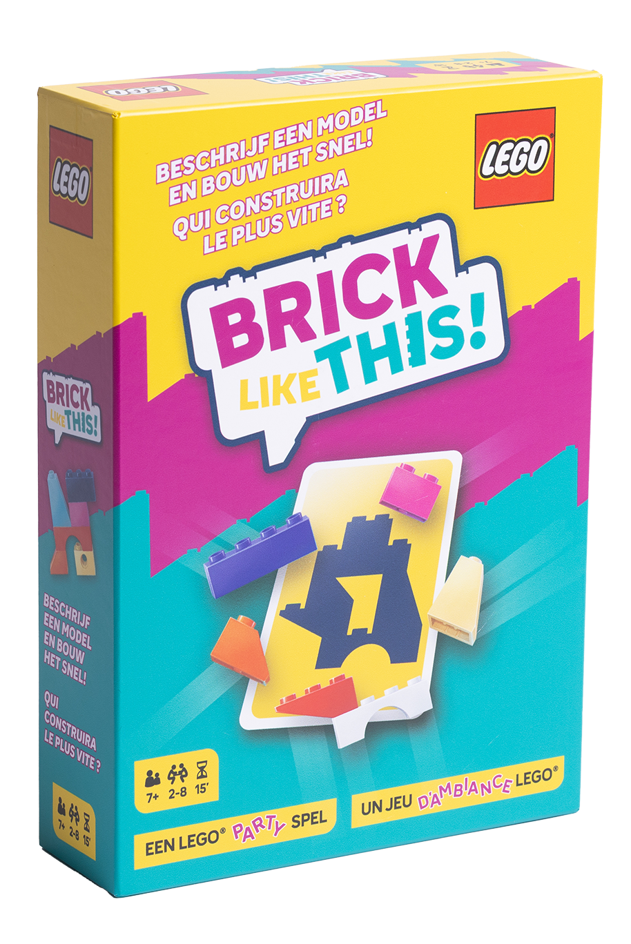 « Brick Like This! » est un jeu de construction LEGO® amusant et rapide, idéal pour jouer en famille ou avec des amis. Une bonne communication et une excellente coopération sont essentielles pour remporter la partie. Un coéquipier décrit la construction LEGO® aussi précisément que possible afin que l’autre coéquipier puisse la reproduire à l’identique. Toutes les équipes construisent simultanément et s’affrontent dans une course contre la montre pour terminer leur construction LEGO® le plus rapidement possible.